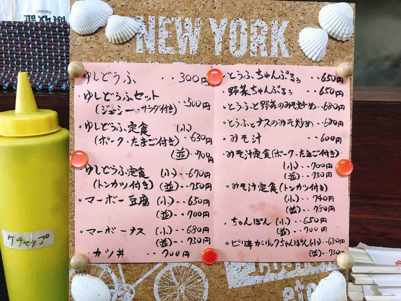 実際にはもっとたくさんのメニューが店内に貼られている。