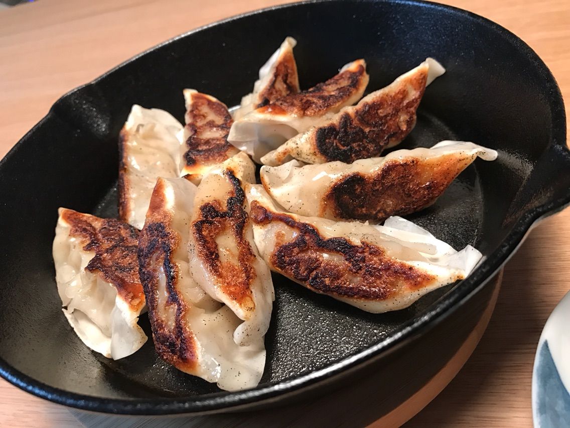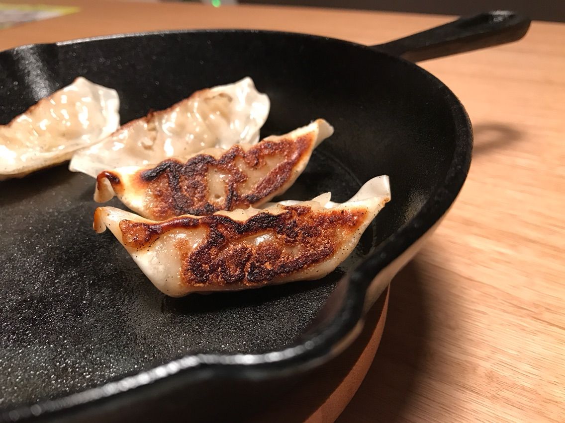 スーパーで売っている安いチルド餃子でも充分美味しく頂ける。