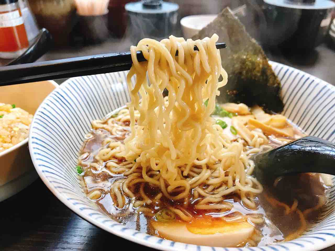 パツポキっとした低加水の細縮れ麺は乾麺のようで面白い。